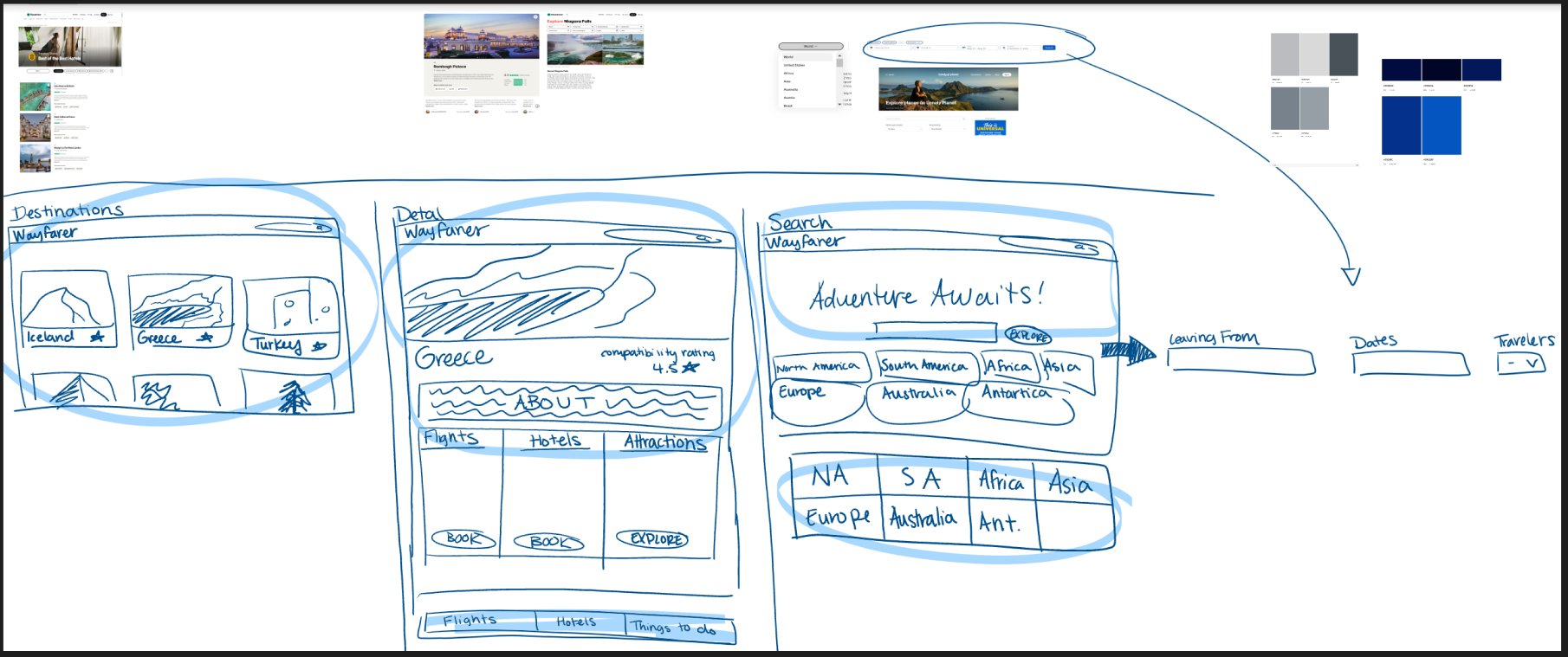 - Inspiration: I looked up some different travel sites and took some screenshots of the elements I liked.